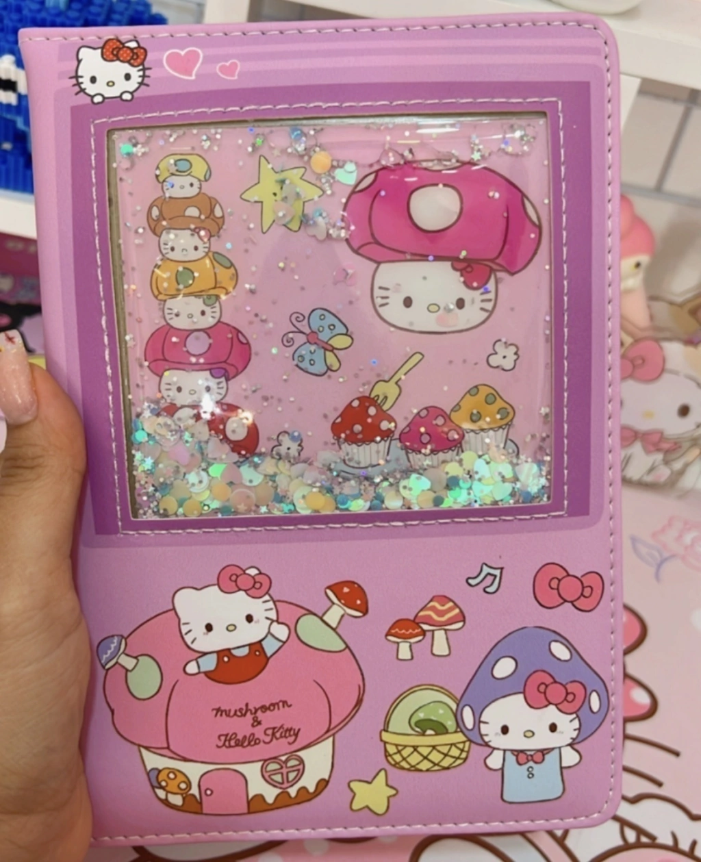 Capa acolchoada com detalhes de água com glitter Tamanho A5 Folhas simples com pautas