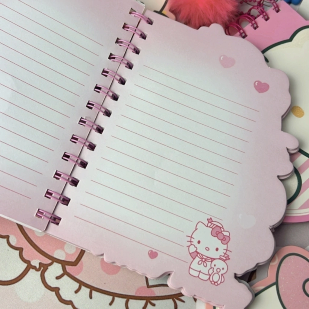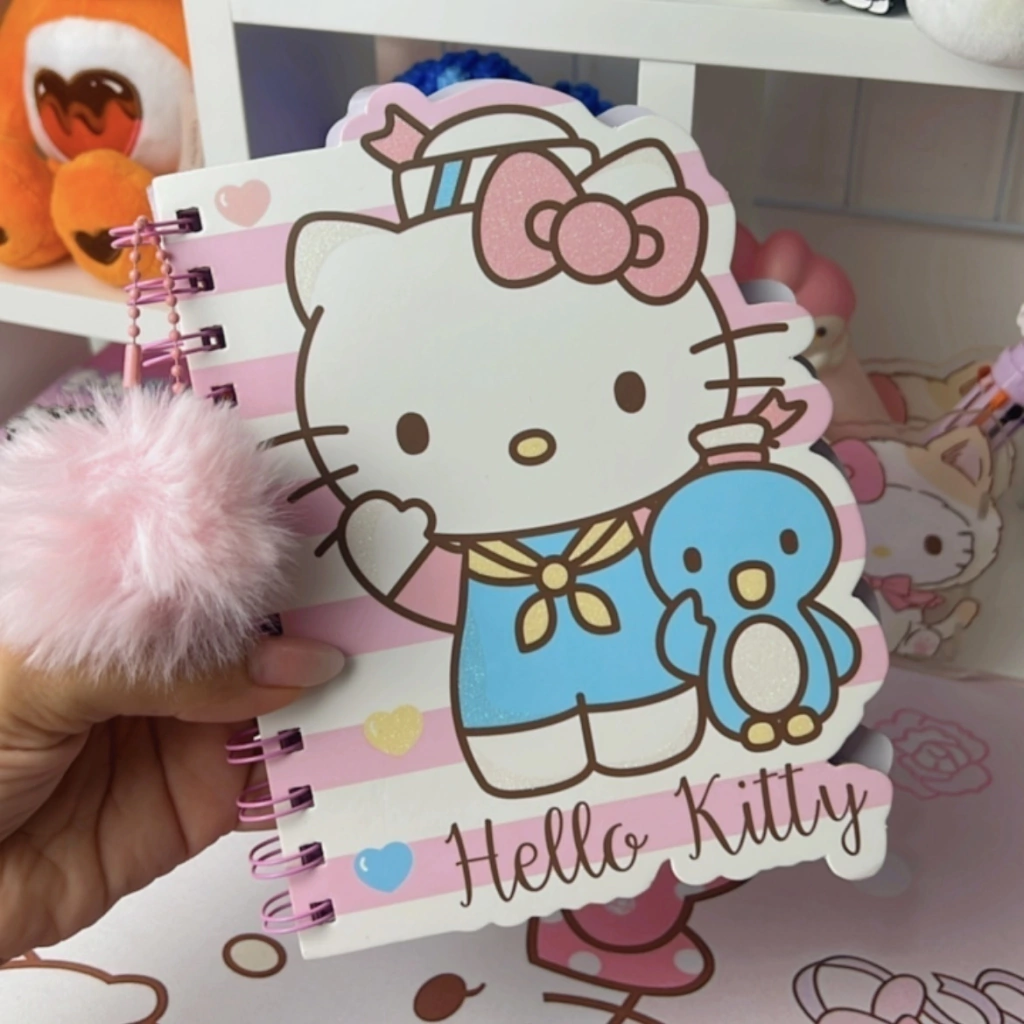 O Caderno vem com um lindo chaveiro pompom e detalhes com glitter na capa super lindo!