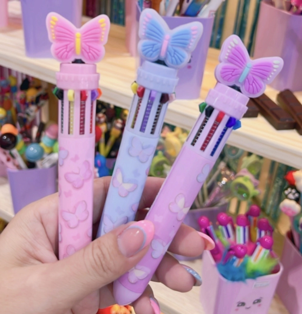 São 10 cores em uma caneta só 😍 Ponta esferográfica de 0.5mm