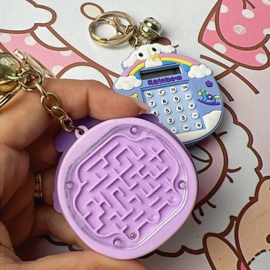 Além de calculadora, ela é um chaveiro e atrás possui um joguinho divertido de labirinto