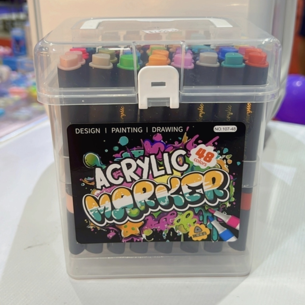 Com 48 marcadores acrílicos em cores vibrantes e cobertura intensa, esse kit é ideal para personalizar papel, madeira, vidro, pedra e muito mais.
